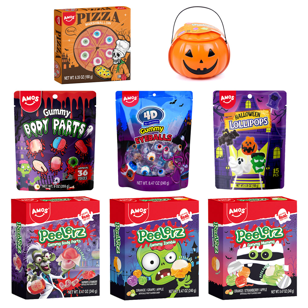 Savourez un plaisir sans culpabilité avec les gummies pelables Amos, faibles en sodium et sans matières grasses, adaptés à diverses préférences alimentaires.
