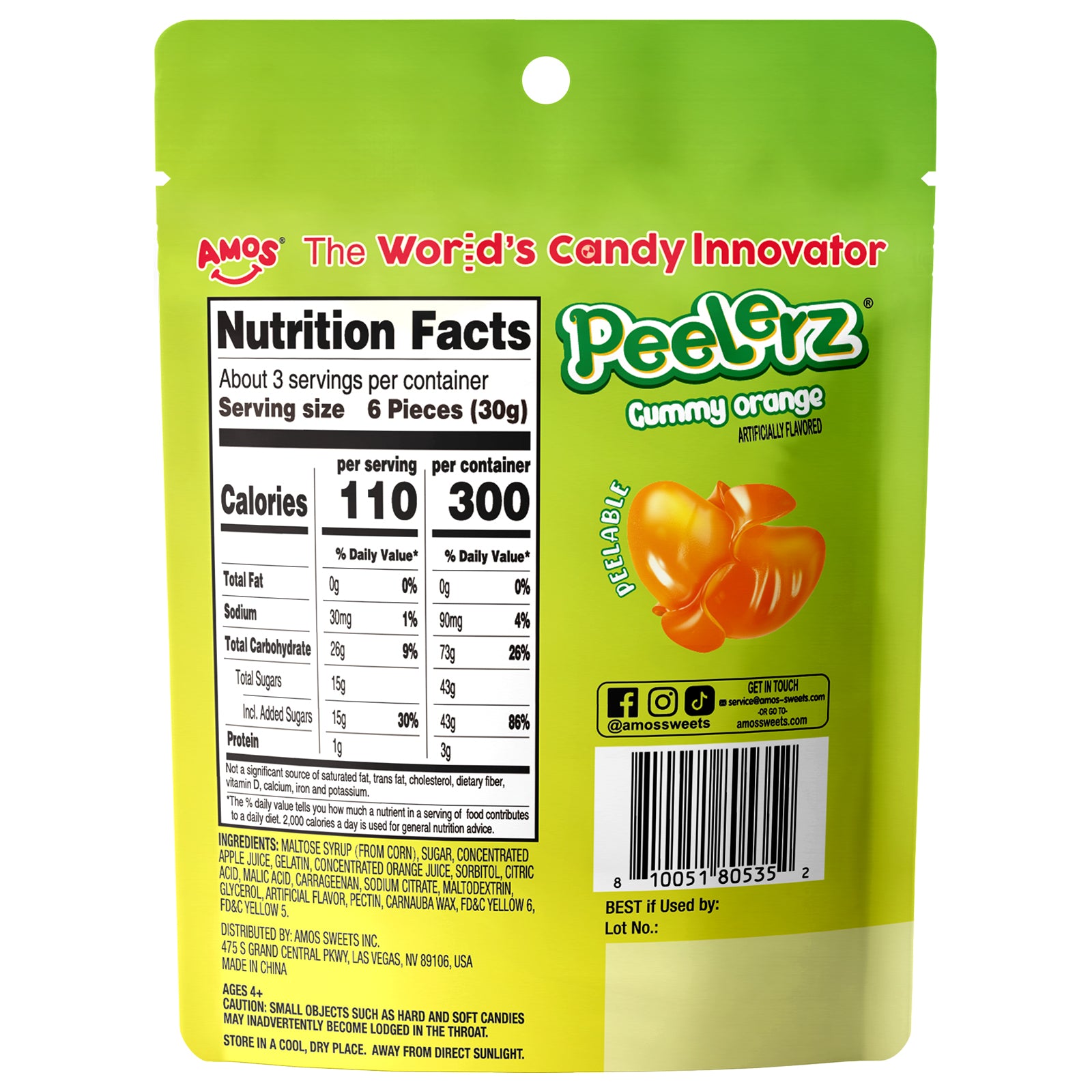 Savourez un plaisir sans culpabilité avec les gummies pelables Amos, faibles en sodium et sans matières grasses, adaptés à diverses préférences alimentaires.