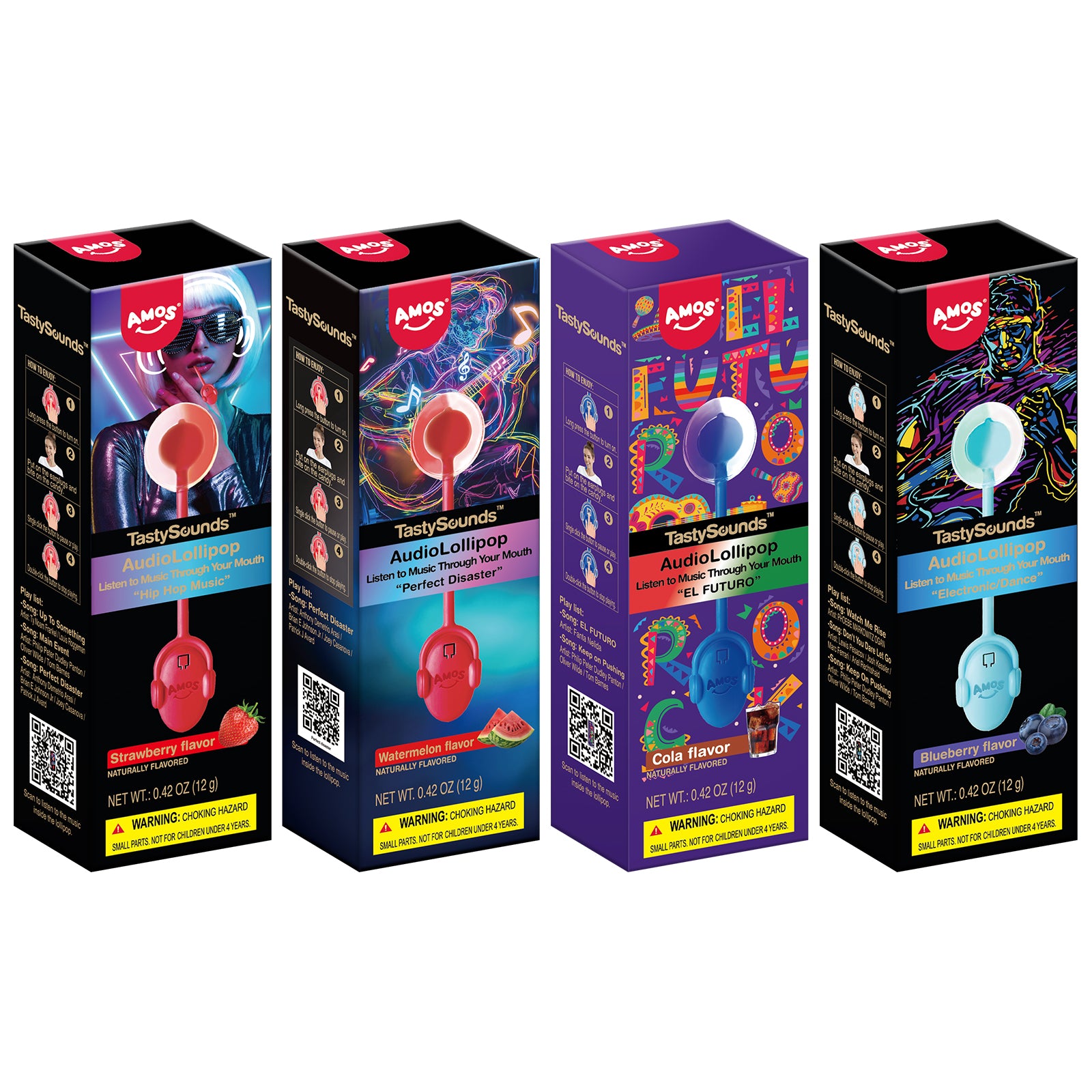 *Avez-vous déjà essayé une sucette qui joue de la musique dans votre bouche ? La sucette Amos Audio combine naturellement douceur et jouets en un seul produit pour satisfaire simultanément votre goût, votre plaisir et votre curiosité, en utilisant la conduction osseuse de haute technologie en transmettant la musique à vos dents jusqu'à vos oreilles.